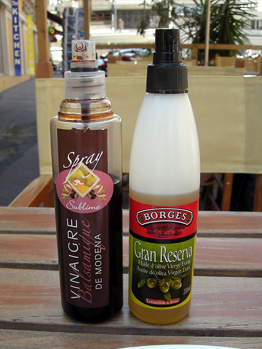 スプレー式のバルサミコとエクストラヴァージンです。