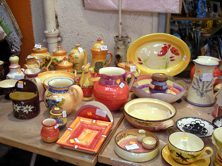 プロムナード・デザングレと並行するように、「花市・アンティーク市」の町並みに……