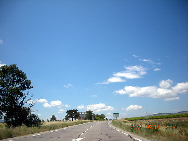 カンヌまでは来た時とさほど変わらない雰囲気の中を走りましたが、カンヌからは一気に山越え~そして果てしなく続くフランスの片田舎の荒野の中を走り続けます。