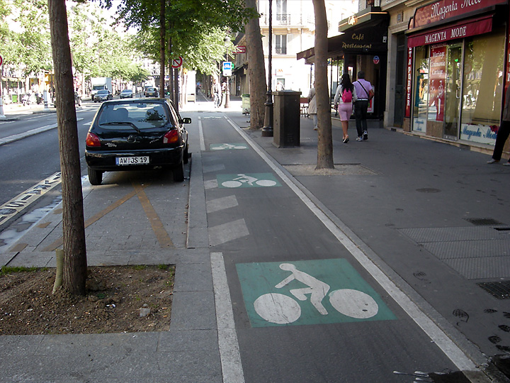 舗道にはしっかり〝自転車専用レーン〟があります。