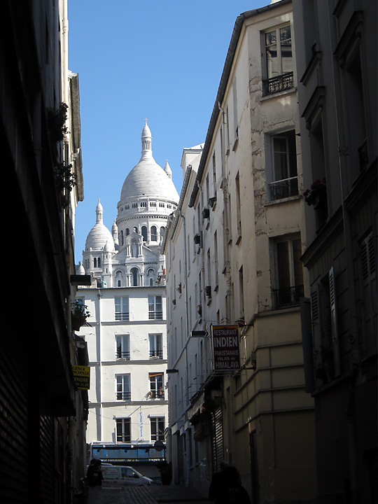 路地に入ったら、真正面にモンマルトルの丘の山頂に建っている